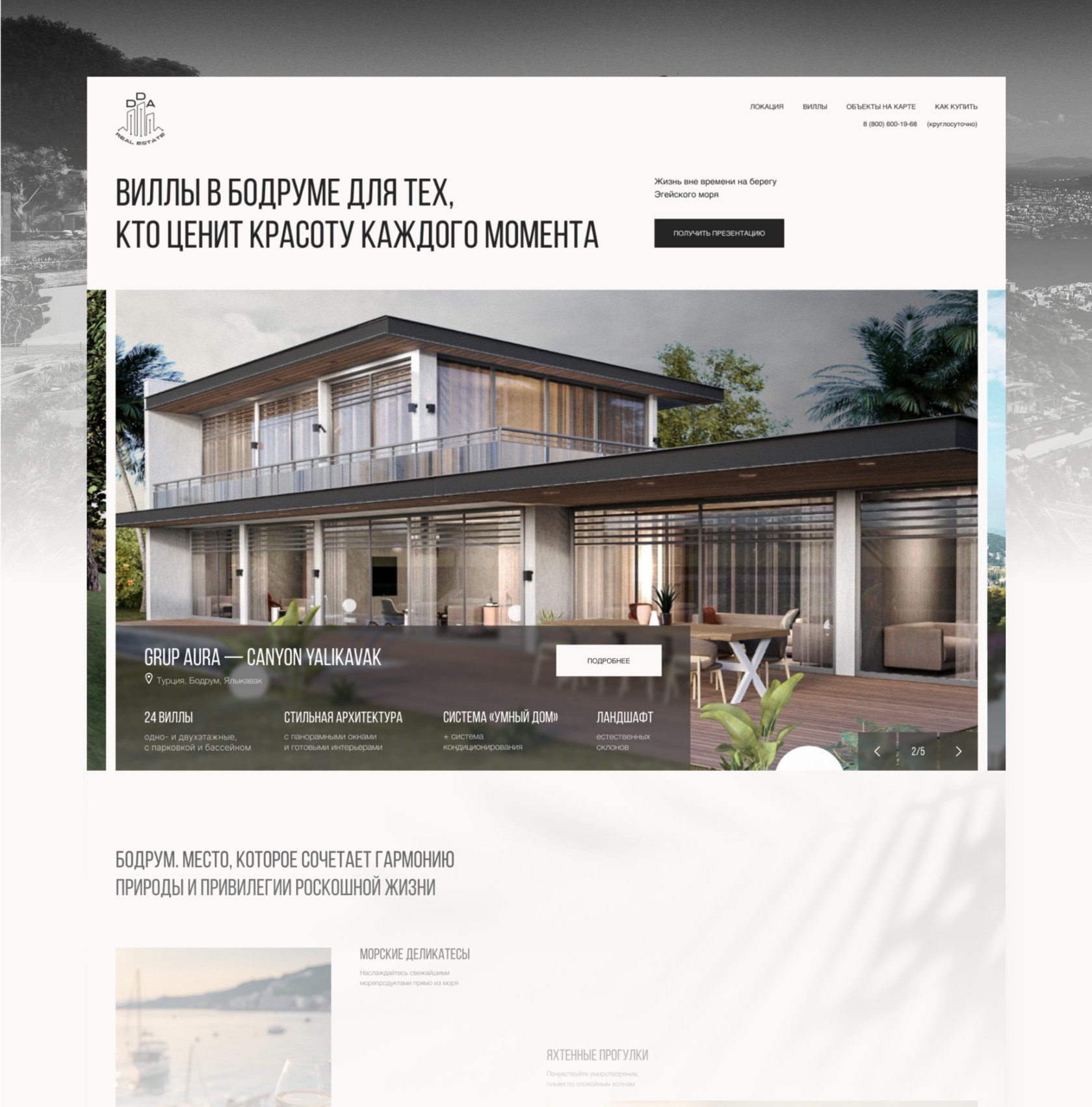 На основе полученной информации мы составили метафорическую карту — инструмент, работающий через ассоциации. Вместе с DDA Real Estate мы определили, что настроение сайта должно быть спокойным, создающим ощущение отдыха, а палитра — теплой, состоящей из приглушенных природных оттенков.