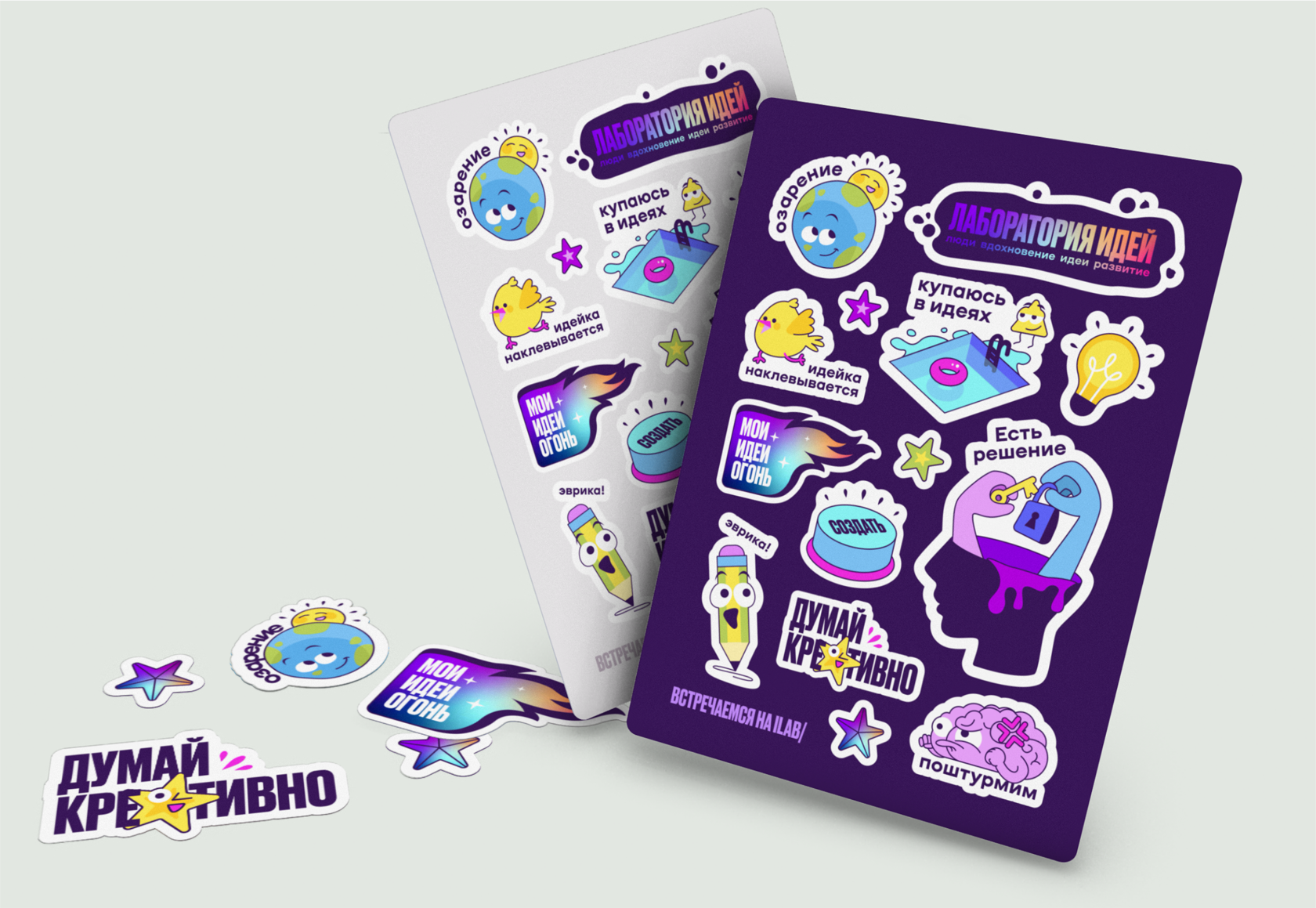 Стикеры должны вызывать интерес к Лаборатории и мотивировать все больше сотрудников чаще принимать участие в проекте. Они должны побуждать к креативу и быть такими, чтобы их хотелось клеить на гаджеты и ежедневники.